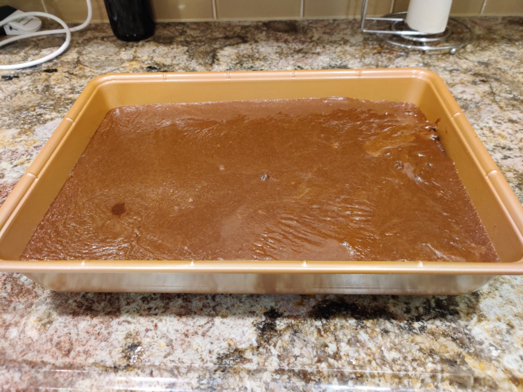 Result? Could be better, though I don’t think it’s due to any fault of the recipe. I think I slightly overcooked it, and the edges are slightly crisp. The frosting is super sweet and delicious, but I need to keep a good eye on it – a lot of the reviews mentioned making sure that it’s at a boil and to be exact about that. Exactness while baking is not my strong suit.