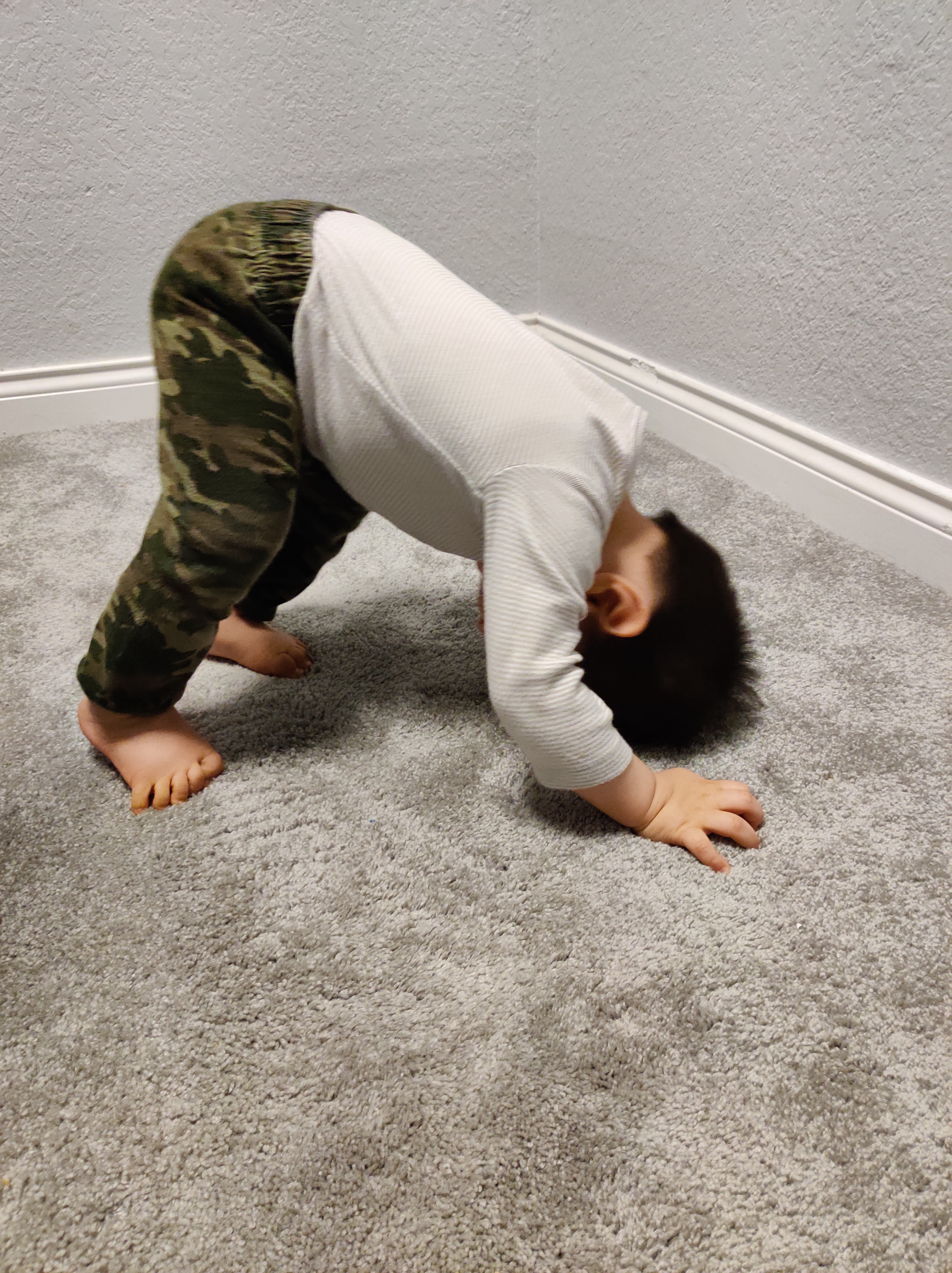 Like, if your baby does the downward dog pose, it means he’s “looking for a sibling” (aka you’ll get pregnant soon). I just thought it was cute he was doing a yoga pose. The question is, how many siblings is he looking for??