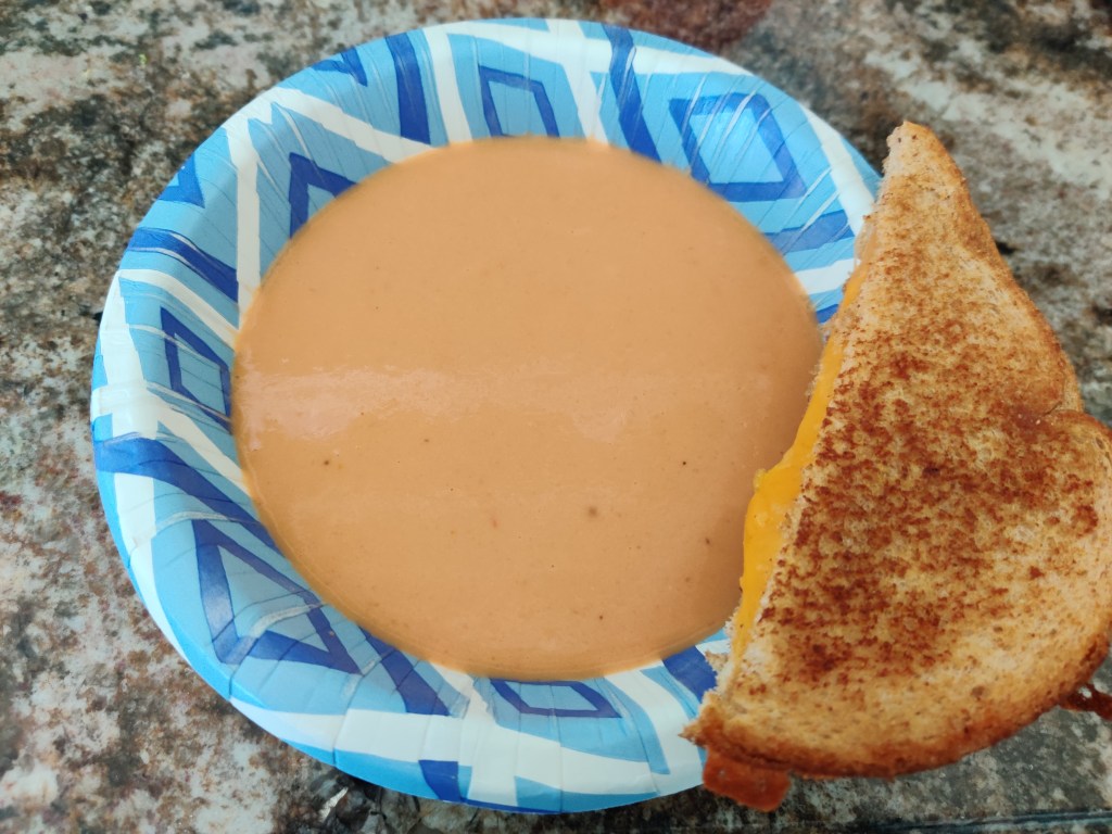 My hubs loves grilled cheese. I’m somewhat neutral about it, but I did find this garlic grilled cheese recipe that makes me love grilled cheese too. The other part of it for me, though, is enjoying it with a delicious tomato soup or bisque recipe. I brought it up to some coworkers, one of whom recommended a tomato bisque recipe. I decided to give it a try last weekend – and boy was I glad!