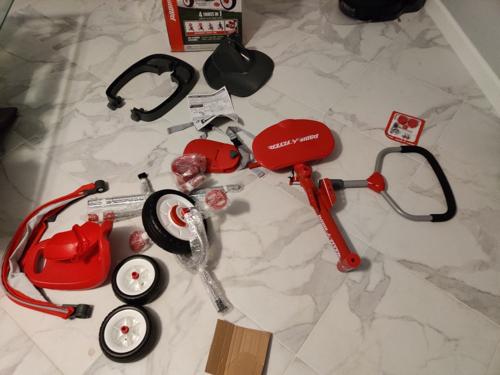 Before the baby was born, it was building cribs and baby swings and figuring out how to fold up the stroller. After the baby was born, some of the toys required basic assembly, like the activity table. Recently, my latest project was to put together his 4-in-1 trike.